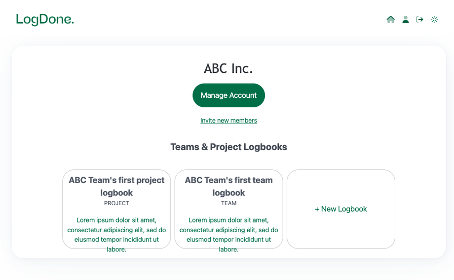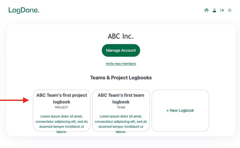 Front and center, you’ll see your active logbooks. Click any to dive in or create a new one with just a click.