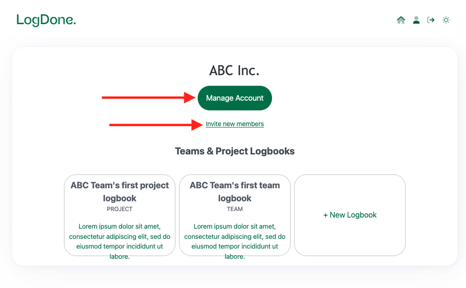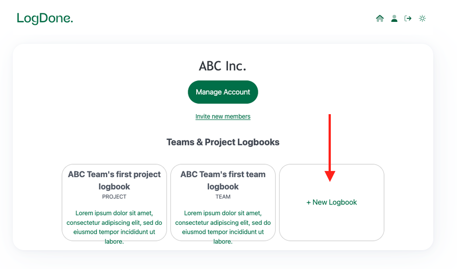 Click on + New Logbook to create a new logbook for your team.